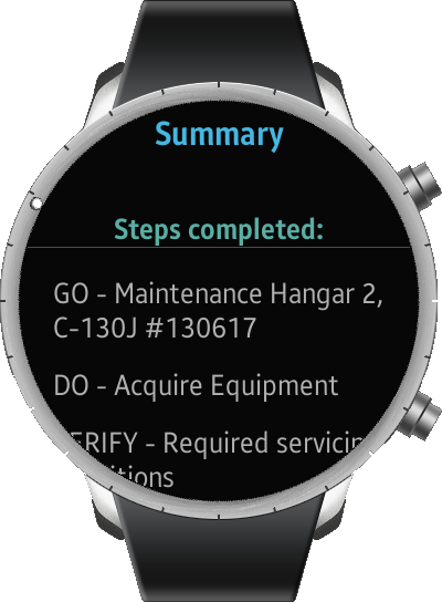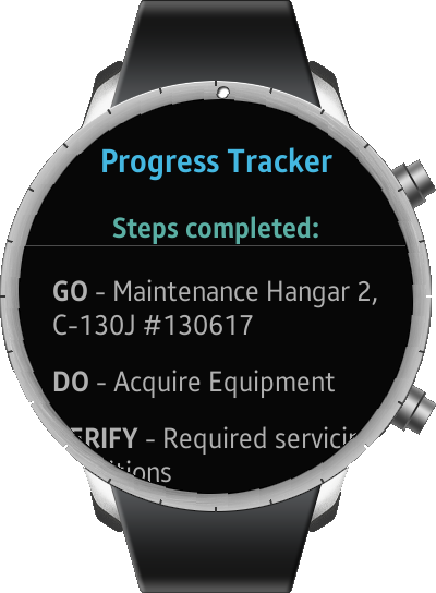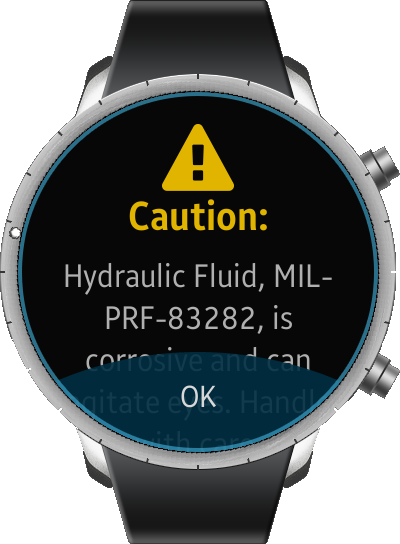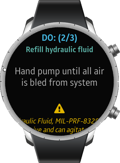 The prototype was developed in the Tizen ecosystem which uses HTML, CSS, and Javascript as its primary languages. The user scenario used to develop this demo follows the procedure of replacing the hydraulic fluid in aft cargo door snubber for a C-130K Super Hercules aircraft.