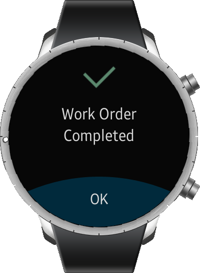 having successfully completed the work order, the user would be shown this screen indicating its successful completion.